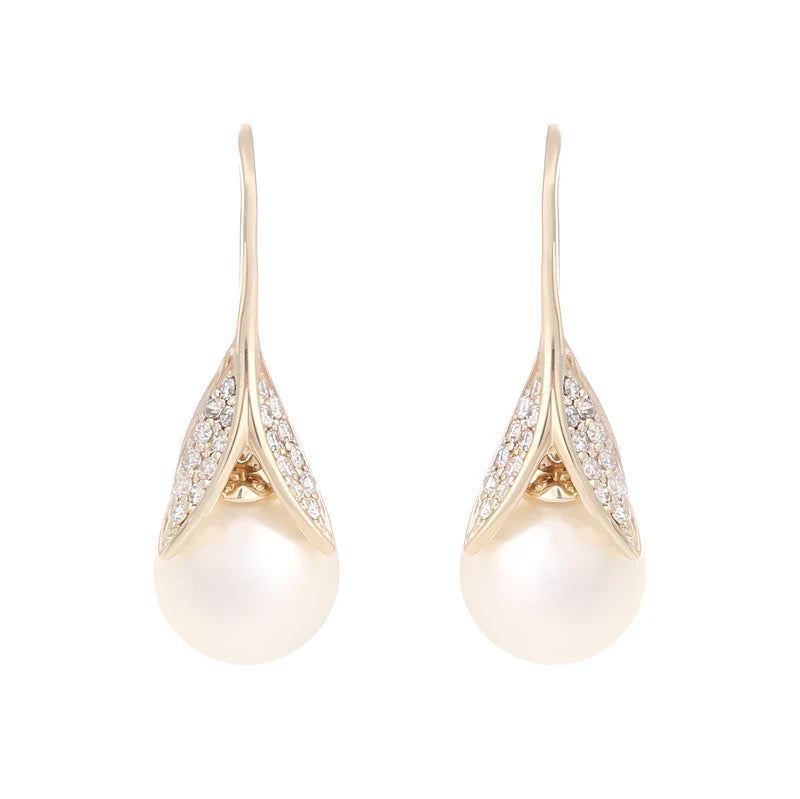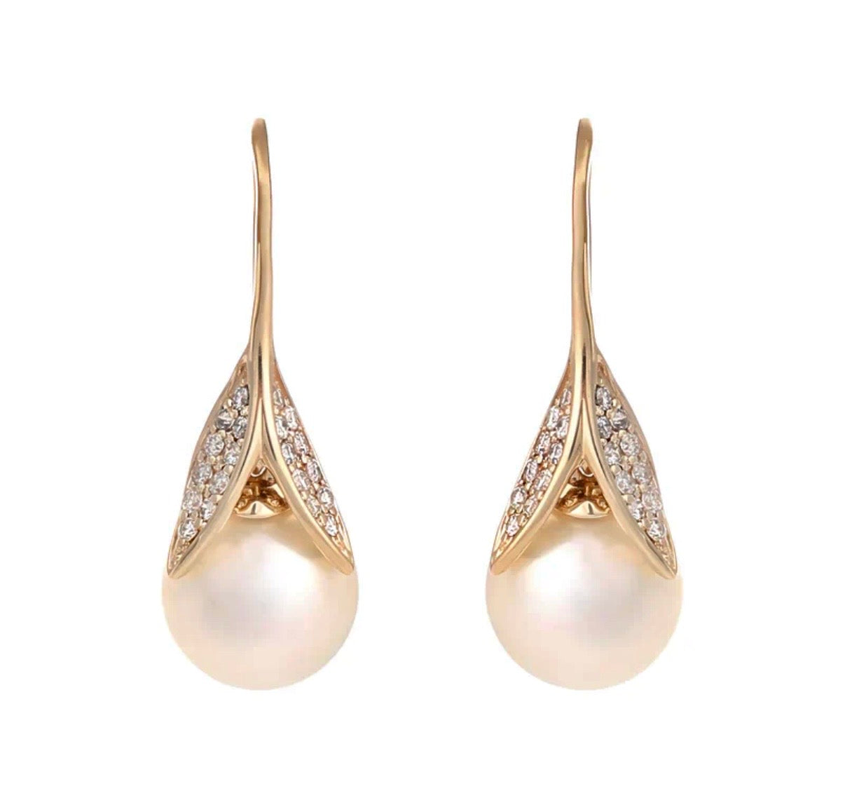 Auri Gem earrings 9ct yellow gold 9mm South Sea pearl with 40 x pave set round brilliant cut diamonds = 0.23ct total diamond weight